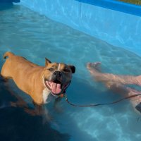 Kontrollierte Gassigänge mit anderen Hunden sind aber überhaupt kein Problem. Zur Sicherheit läuft er draußen angeleint und mit Maulkorb und ist damit ein sehr entspannter Begleiter.