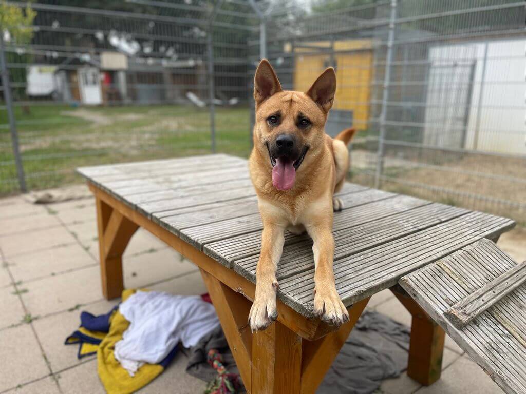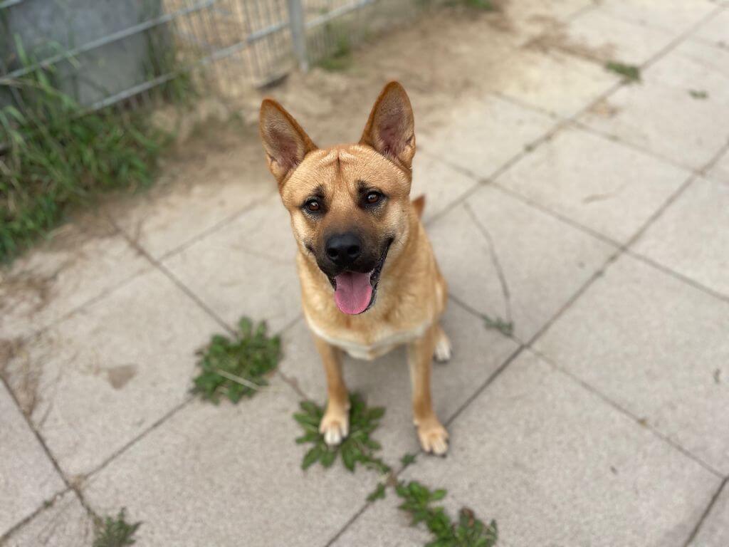 Clive ist er ein sehr freundlicher, überschwänglicher und aktiver junger Bursche, der durch eine behördliche Sicherstellung bei uns gelandet ist. Vermutlich ist er ein Malinois/Akita-Mischling.