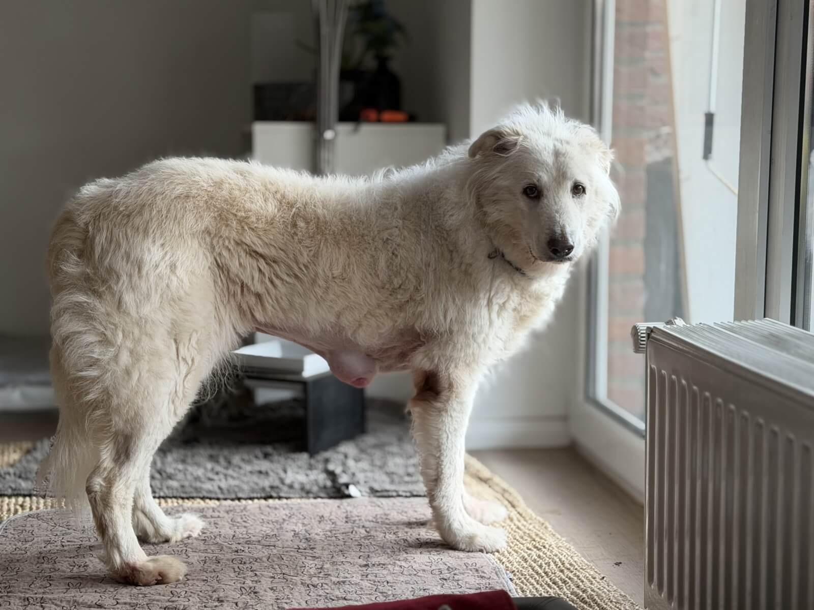 Zurzeit nimmt eine Mitarbeiterin Emma mit nachhause. Dort kommt sie wesentlich besser zur Ruhe als im Tierheim und hat sich schnell eingewöhnt. Dennoch braucht sie altersbedingt ein paar Tage mehr um einen gemeinsamen Rhythmus zu finden. Hat sie sich erstmal eingelebt, ist sie recht pflegeleicht. Sie hört auf die Grundkommandos, sagt Bescheid, wenn sie mal muss und genießt ansonsten einfach die Gesellschaft ihrer Menschen. Auch das Alleine bleiben klappt nach einer Eingewöhnungszeit sehr gut und 2-3h sind mittlerweile kein Problem mehr.