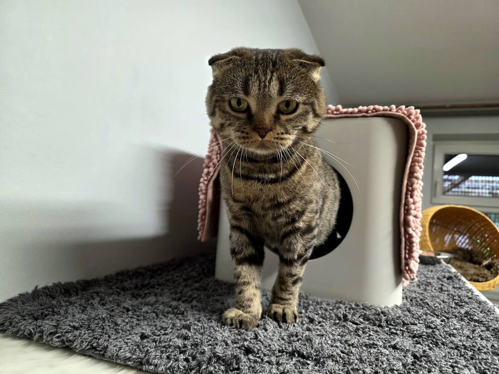 Sie wünscht sich ein ruhiges Zuhause in einer Wohnung mit gesichertem Balkon oder einer gesicherten Terrasse. Minos soll nicht alleine bleiben, deshalb wünscht sie sich eine Katzenfreundin – diese sollte ebenso von ruhigerer Natur sein.