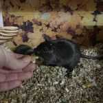 Wir beherbergen aktuell 3 weibliche Wüstenrennmäuse, die ca. 1,5 Jahre alt sind. Bei uns leben sie einmal als 2-er Gruppe (schwarz + grau-weiß) und ein Mädel (weiß) alleine, da es sich leider nicht mit den anderen beiden verträgt. Das Pärchen ist dem Menschen gegenüber sehr aufgeschlossen und neugierig und mit etwas Geduld und Ruhe auch handzahm. Das einzelne Mädel ist etwas zurückhaltener.